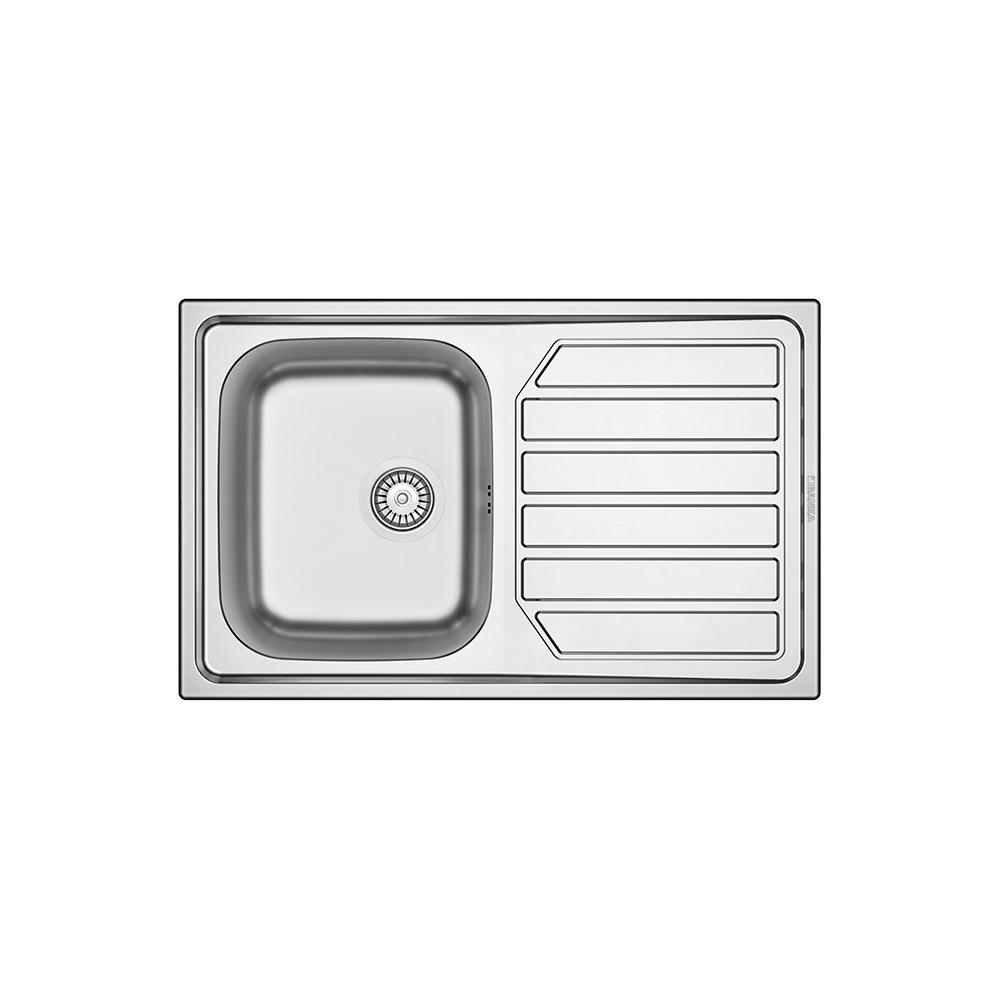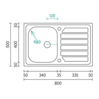 Lava-louças em inox com 800 cm de comprimento.